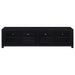 Transform your living room into the ultimate entertainment hub with this sophisticated three-piece entertainment center. Anchored by a commanding 79-inch TV stand, this set is designed to accommodate up to an 85-inch television, bringing a cinematic experience right into your home. The TV stand features four doors that open to adjustable shelves, perfect for organizing your media devices, gaming consoles, and more. Flanking the TV stand, two sleek media towers offer additional storage and display options, with open shelving for your favorite books and decor, and a concealed cabinet for hidden storage. Finished in a striking black hue, this entertainment center blends modern elegance with functional design, creating a seamless and stylish focal point in your living space.